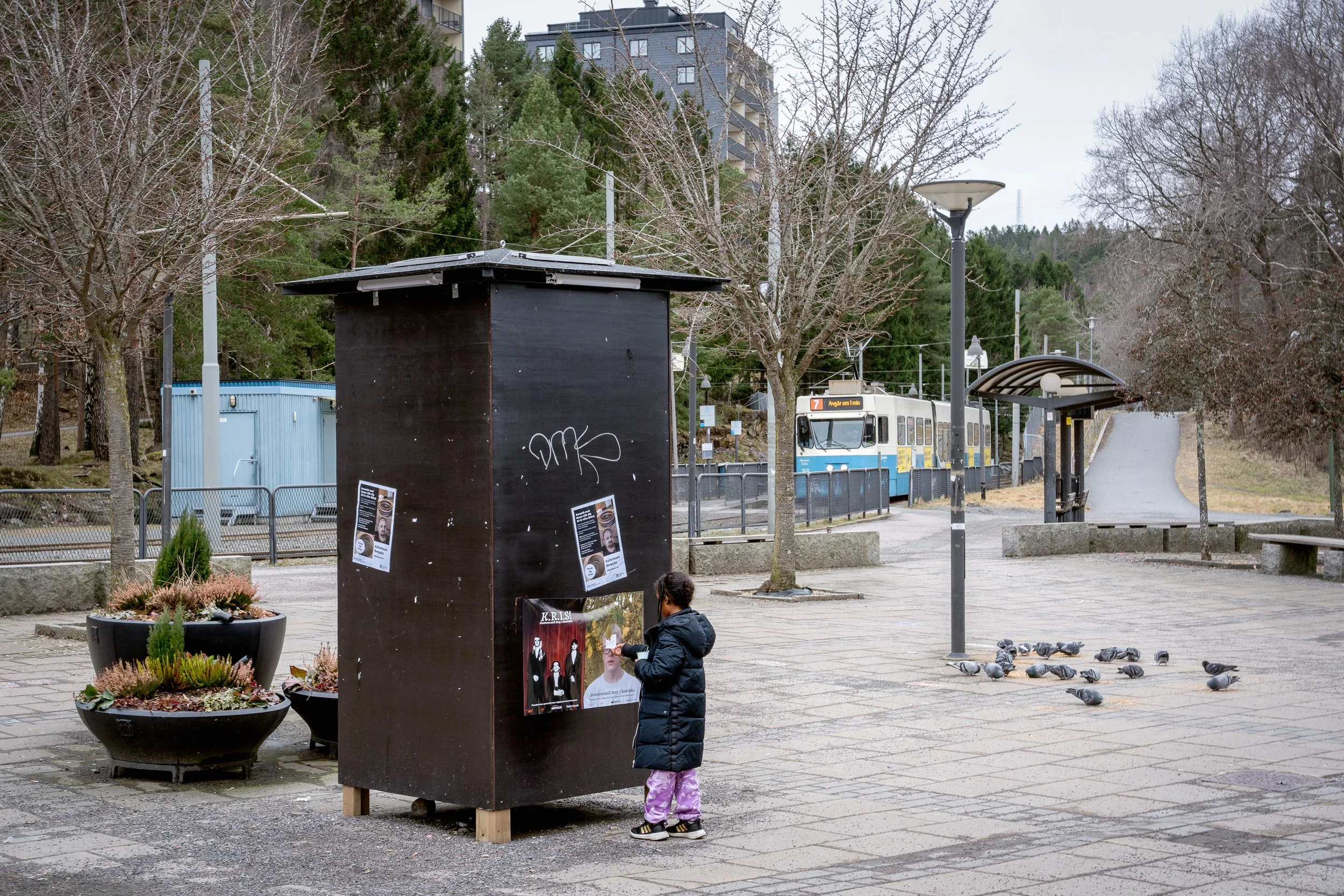 I Göteborg finns det ett 40-tal officiella affischeringstavlor som kommunen sköter om. Under ett års tid försökte jag skildra Göteborgs stadsdelar genom att fotografera miljöerna som tavlorna står i.